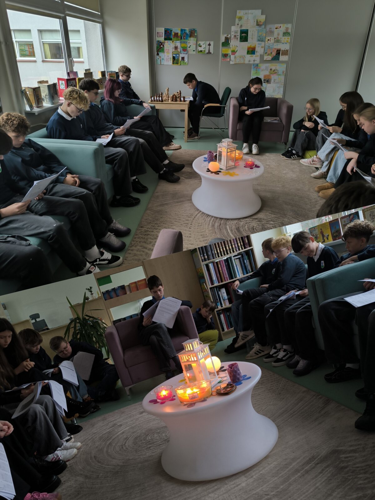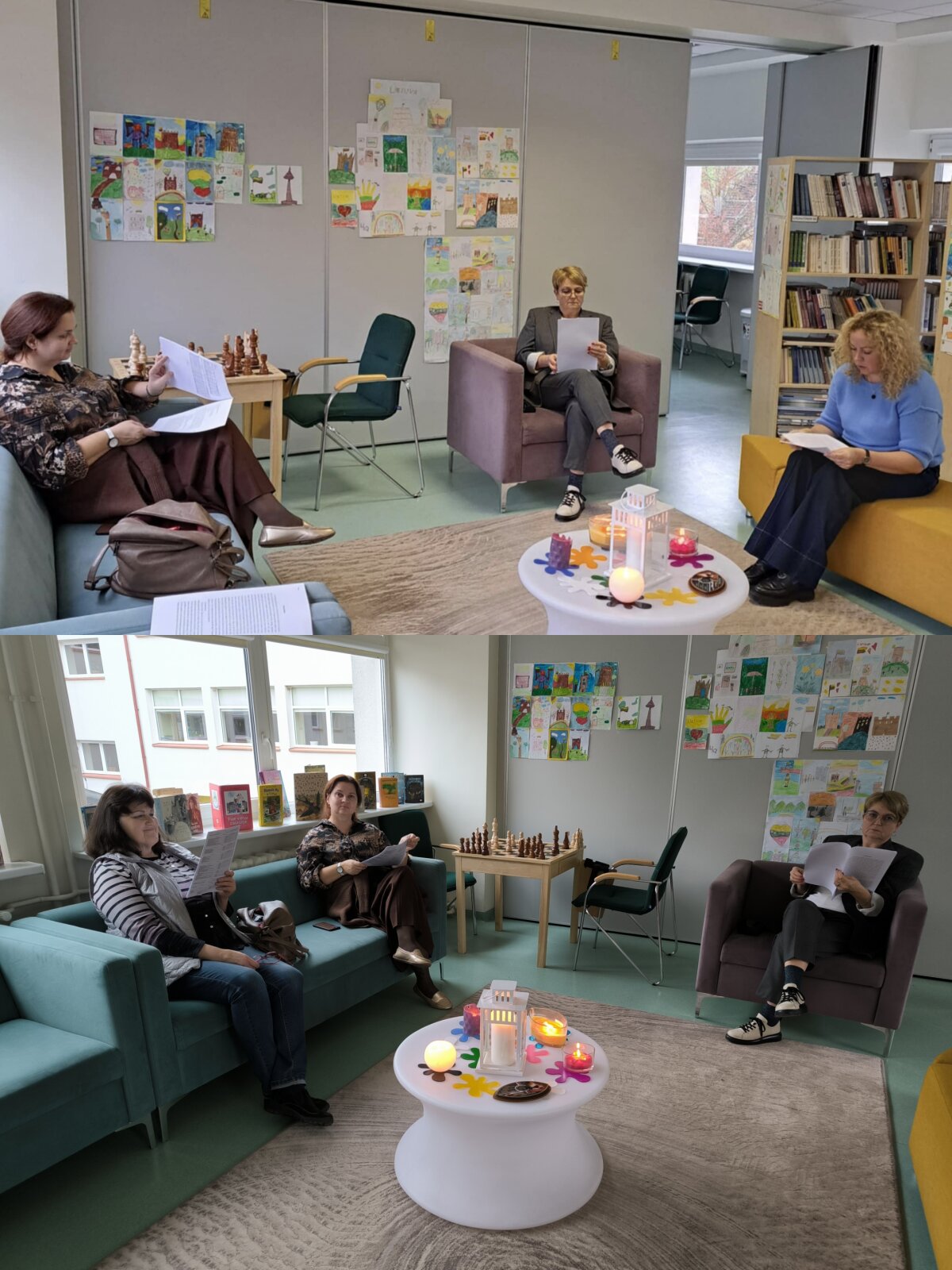 Lapkričio 10-16 d. progimnazijos bibliotekoje vyko Šiaurės šalių literatūros savaitės skaitymai mokiniams ,,Auštant“ ir suaugusiems ,,Sutemų valanda“. Bibliotekininkė skaitymų dalyviams pristatė savaitės idėją, šiaurės šalis, šiaurės šalių rašytojų kūrinius. Šių metų skaitymų tema – šiaurės šalių vienybė.