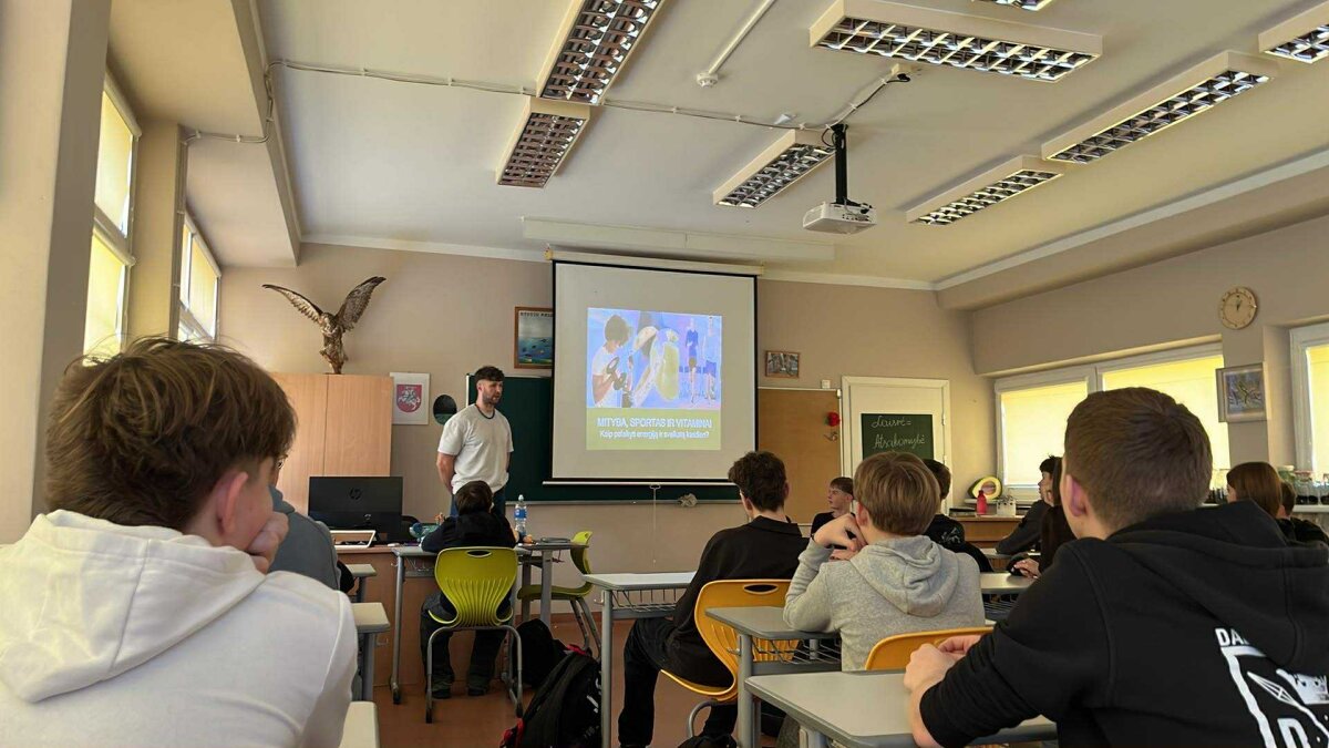 Sausio mėnesį mūsų mokykloje lankėsi sveikatingumo specialistas ir sporto treneris Aurimas Juozaitis. Susitikimo metu jis su aštuntokais dalijosi savo žiniomis apie sveiką mitybą, fizinį aktyvumą ir kasdienius įpročius, padedančius stiprinti sveikatą. Aurimas, dirbantis sporto studijoje, jaunimui papasakojo, kodėl svarbu derinti sportą su subalansuota mityba, kaip pasirinkti sveikesnius produktus ir kaip kasdien išlaikyti motyvaciją judėti. Ačiū Aurimui už įkvepiančias ir prasmingas pamokas!
