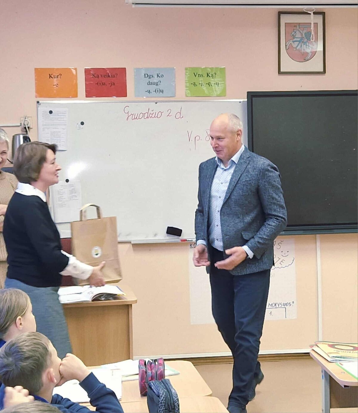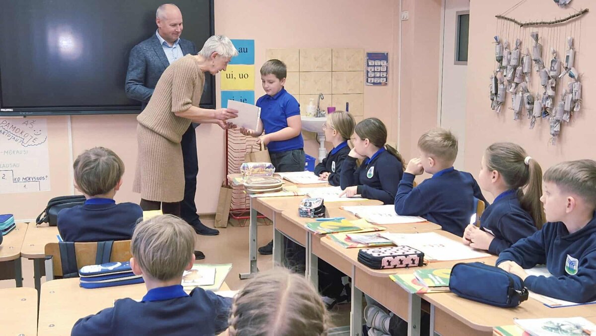 Šiandien progimnazijoje lankėsi Raseinių priešgaisrinės saugos tarnybos vadovas Robertas Sitavičius, kuris asmeniškai pasveikino mokinį už drąsų poelgį. Visai klasei buvo padovanotos mokymosi priemonės, skirtos ugdyti žinias ir įgūdžius, kaip elgtis gaisro atveju. Progimnazijos direktorė Vaiva Zubrickienė pasidžiaugė mokinio atsakingu elgesiu ir įteikė jam padėką, pabrėždama, kad tokie pavyzdžiai įkvepia visą progimnazijos bendruomenę.